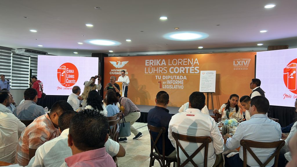 Acapulco, Gro., 12 de septiembre de 2025.- La diputada local de Movimiento Ciudadano (MC), Erika Lührs Cortés, rindió su primer informe legislativo, en un salón del hotel Ritz de Acapulco, donde lanzó un mensaje político en torno a la reconstrucción del puerto y la necesidad de proyectos serios.